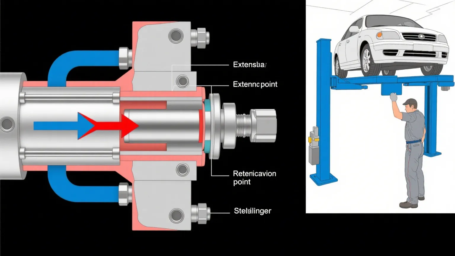 Содан кейін гидравликалық гидравликалық цилиндр бар. Бұл қысым мен тарту үшін қысым қолданады, сондықтан көтеріліп, төмендету үшін дәл бақылау аласыз. Бұл гараждарда, автомобильдердегі көлігімен, көліктерден түсетін гараждарда, немесе едендер арасында қозғалатын гараждардағы көлігімен жүру керек. Мұнда ауырлық күшіне сенбейді - әрбір қозғалыс, бұл тегіс, дәйекті нәтиже береді.