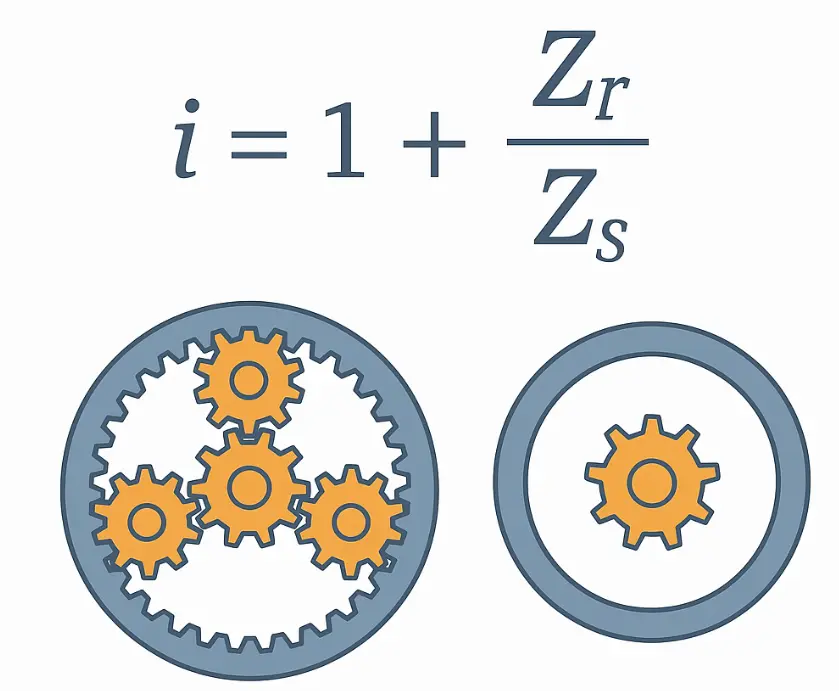 Планетарлық редуктордың берілу коэффициентін есептеу формуласы іс жүзінде күрделі емес. Ең көп таралған құрылым, бұл күн берілісі белсенді, ішкі сақина бекітілген және планеталық тасымалдаушы шығарады. Осы құрылымға сәйкес, тарату коэффициентін есептеу формуласы: